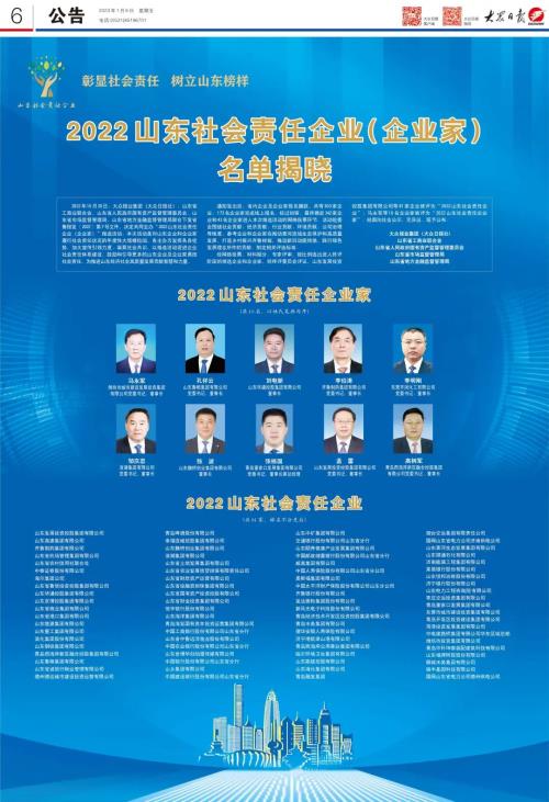 “2022山東社會(huì)責(zé)任企業(yè)(企業(yè)家)”推選活動(dòng),經(jīng)資料賦分、網(wǎng)絡(luò)投票、初審?fù)镀薄?zhuān)家終審、媒體公示等程序,全省共有81家企業(yè)獲選“2022山東社會(huì)責(zé)任企業(yè)”,10名企業(yè)家上榜“2022山東社會(huì)責(zé)任企業(yè)家”。